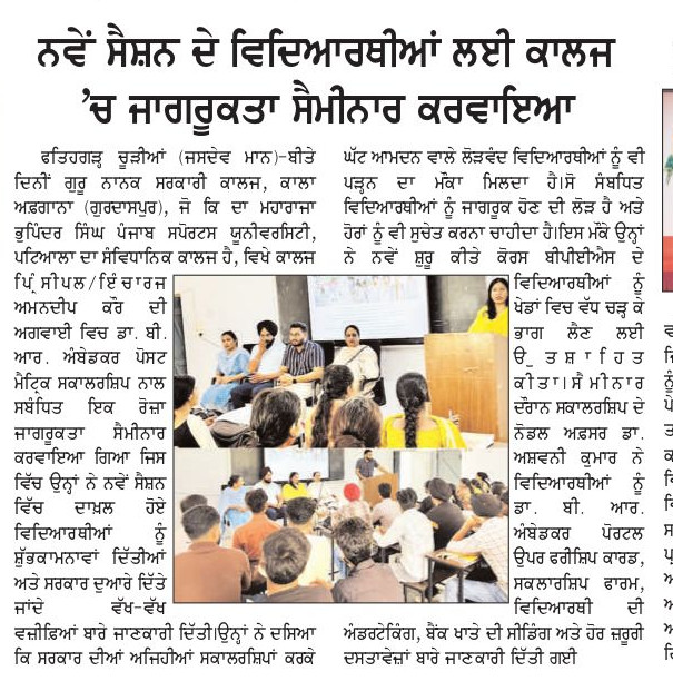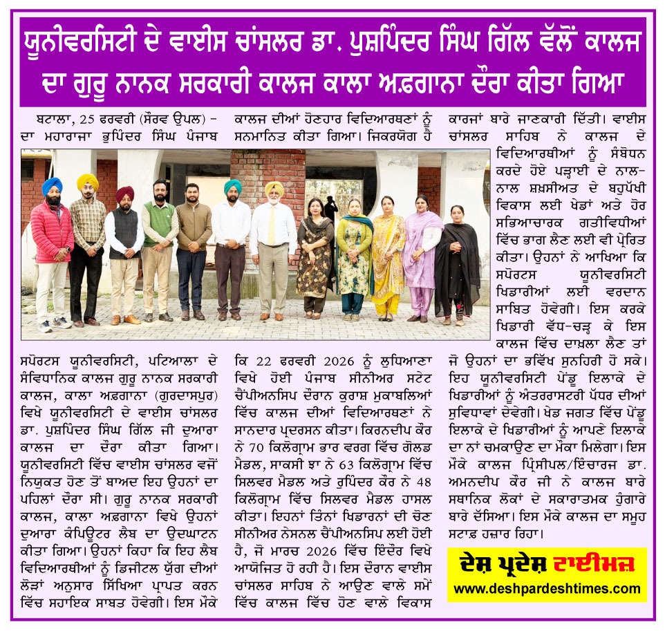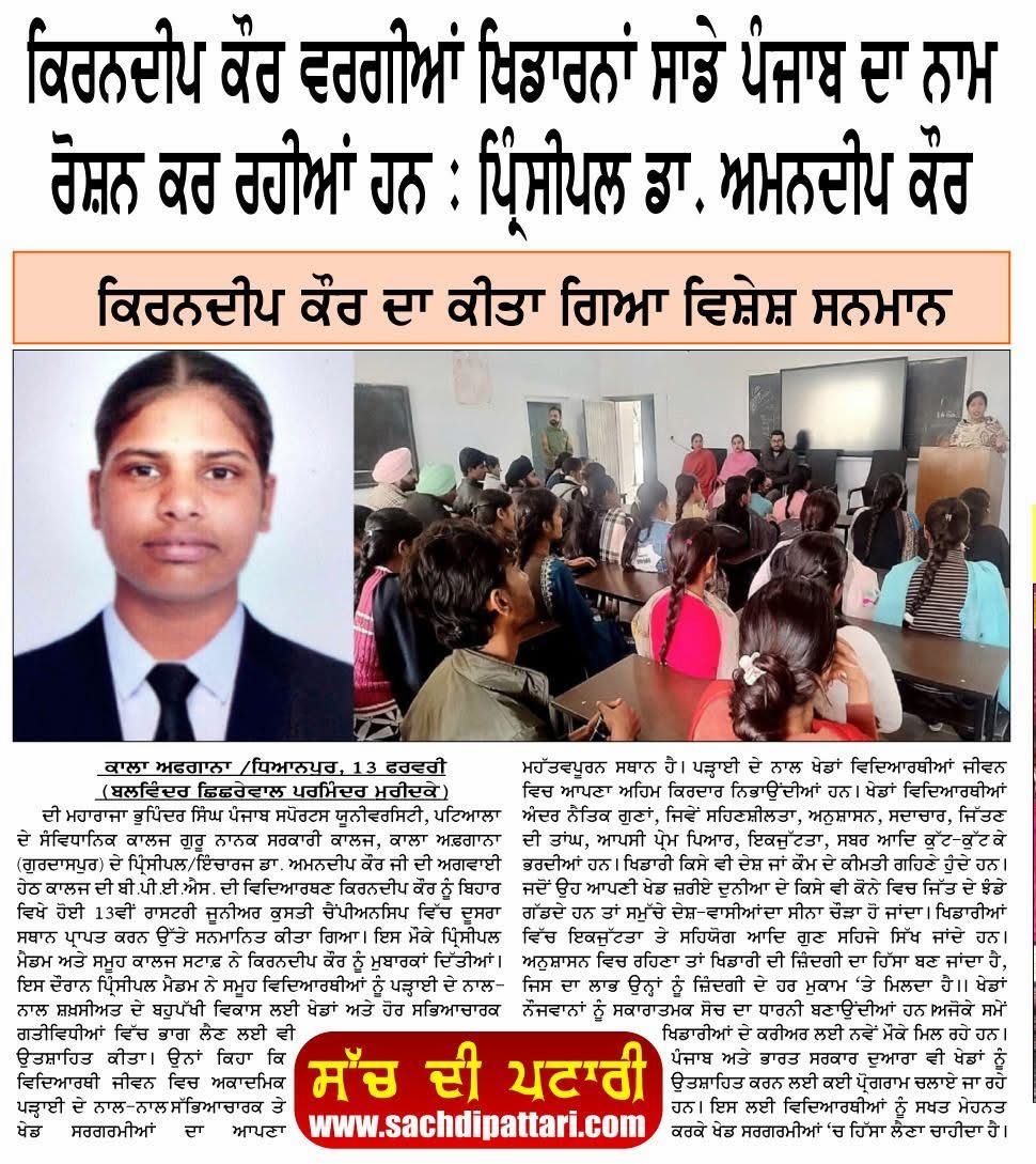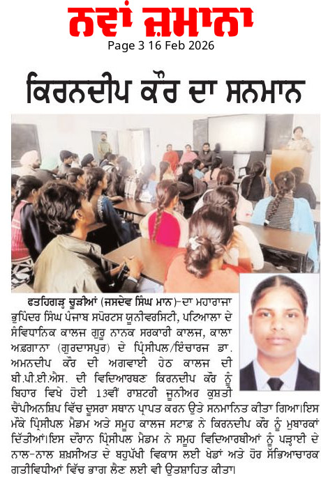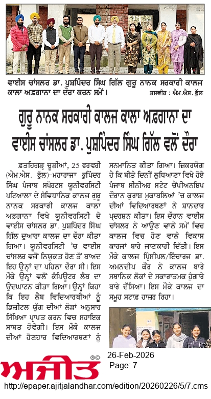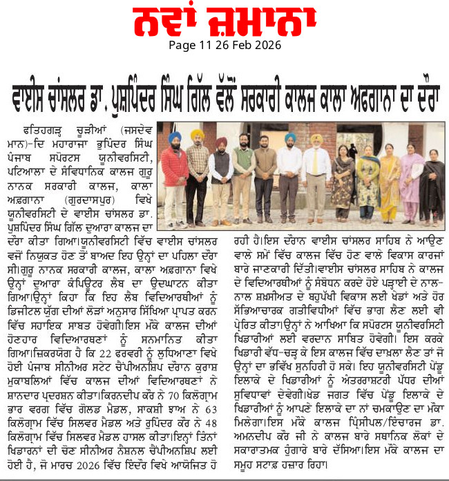 Guru Nanak Government College, Kala Afghana